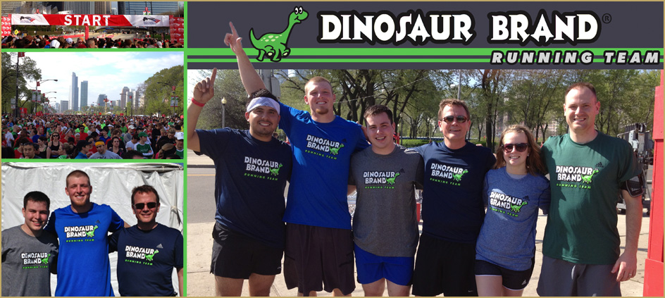On a gorgeous sunday morning in Chicago on March 25th, 40,000 runners participated in the 2012 Shamrock Shuffle, the largest 5-mile race in the world. This year's shuffle was the inaugaral competition of Kingsburg Orchards' Dinosaur Brand Running Team. Featured runners were Patrick Eubanks of Kingsburg Orchards, John Graves and Damon Marano, of Anthony Marano Company in Chicago. 65 degress and not a cloud in the sky, Chicago rarely sees such beautiful spring days. Conditions were prime and the Dino Running Team exceeded expectations with each member finishing the 5 miles in under 48:00 min!! This year's overall fastest finish time was 23:17 - maybe we can shoot for the top next year, lol.